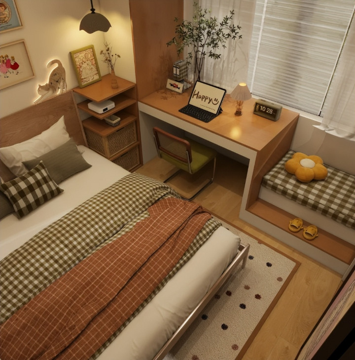 床头柜并非那么重要,你用一个小凳子都能充当电视柜去用,因此,没必要花大价钱去做悬空电视柜,还是买独立的小床头柜比较好,不用时还能拿走。