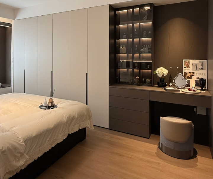 可是,这种卧室装修已经慢慢的被淘汰了,因为推拉门的衣柜它里面是有轨道的,长期使用,这里藏污纳垢是很严重的,到时候无疑会增加家务负担。