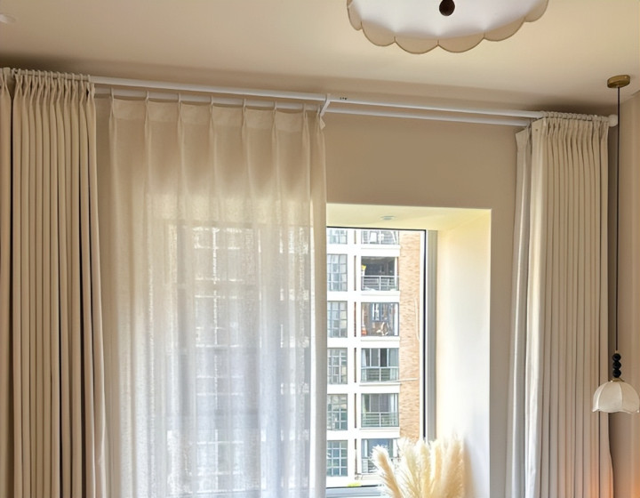 罗马杆窗帘是装修公司比较推荐的做法,这种装修方式很简单,只需要在窗户两边打孔,然后把罗马杆固定在上面即可,到时候选择喜欢的窗帘用着也还可以。